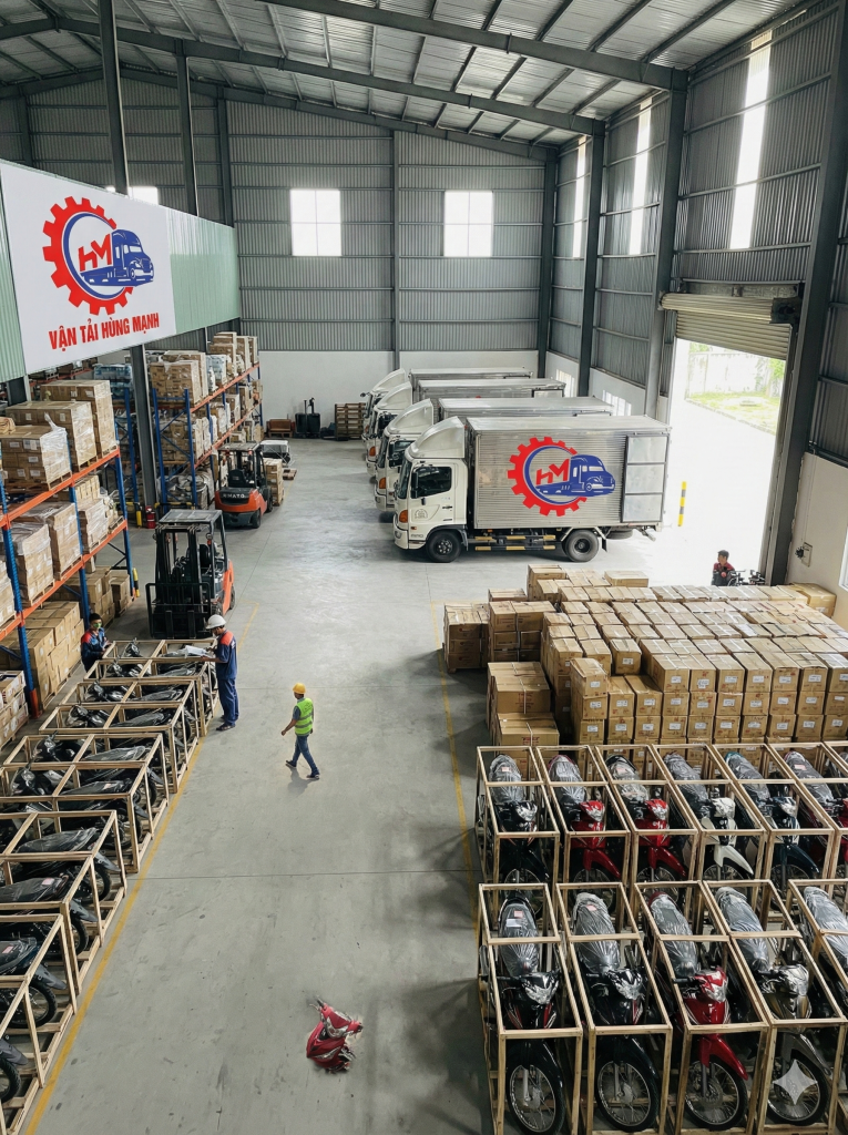 Hệ thống kho bãi rộng rãi giúp việc giao nhận diễn ra thuận lợi. Vận Tải Hùng Mạnh bố trí kho tại hai đầu cầu kinh tế: