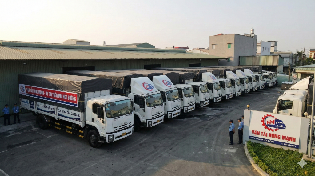 Vận Tải Hùng Mạnh sở hữu năng lực vận tải vượt trội. Hệ thống kho bãi rộng rãi đảm bảo khả năng lưu kho và phân loại hàng hóa. Chúng tôi đầu tư mạnh mẽ vào phương tiện vận tải. Đội xe tải đa dạng trọng tải từ 5 tấn, 8 tấn, 15 tấn đến 20 tấn. Xe nâng, xe hạ hỗ trợ quá trình bốc xếp nhanh gọn. Lịch trình xe chạy cố định 2 chuyến mỗi ngày. Cam kết này đảm bảo tiến độ giao hàng ổn định.